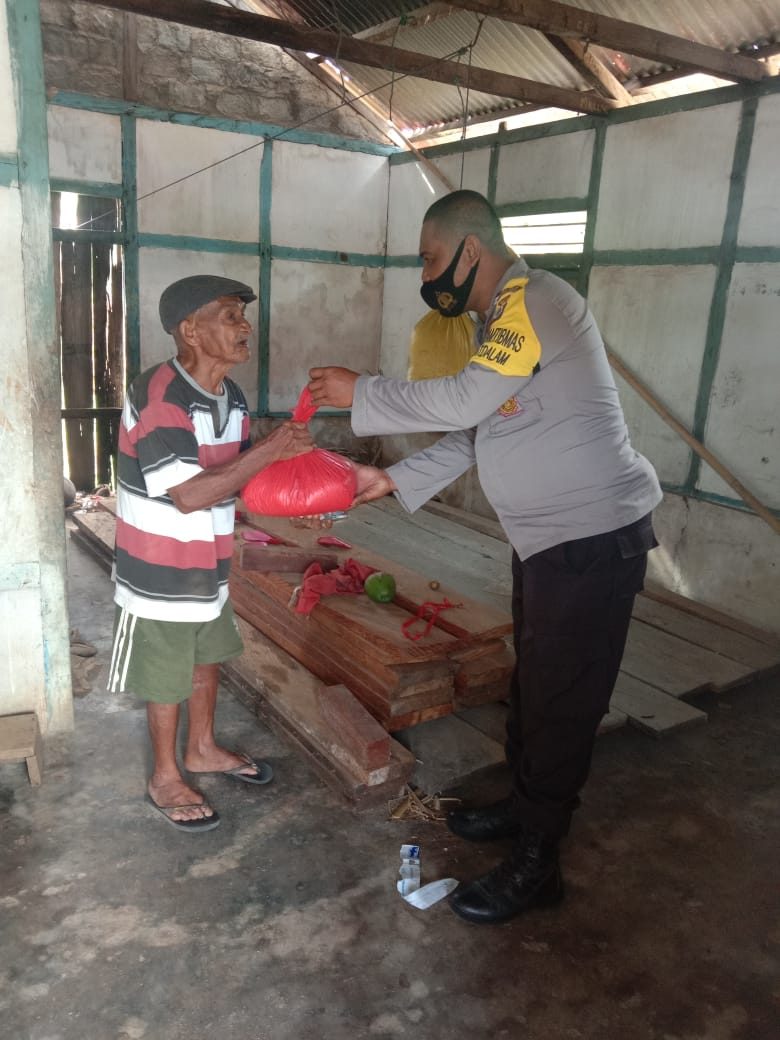 Bhabinkamtibmas Latdalam Giat Pembagian Bantuan Sembako Bagi Warga Ekonomi Lemah Di Desa
