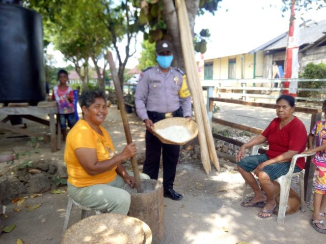 Tribratanews.polrestanimbar.com – Polda Maluku, Polres Maluku Tenggara Barat, Kamis 13 Agustus 2020, pukul 12.20 wit, bertempat di RT.15/RW.07 Desa Latdalam Kecamatan Tanimbar Selatan Kabupaten Kepulauan Tanimbar Bhabinkamtibmas Desa Latdalam Bripka P. Peea, SE melaksanakan giat sambang ke Keluarga Ibu Gleis Dasmasela yang sementara menumbuk jagung.