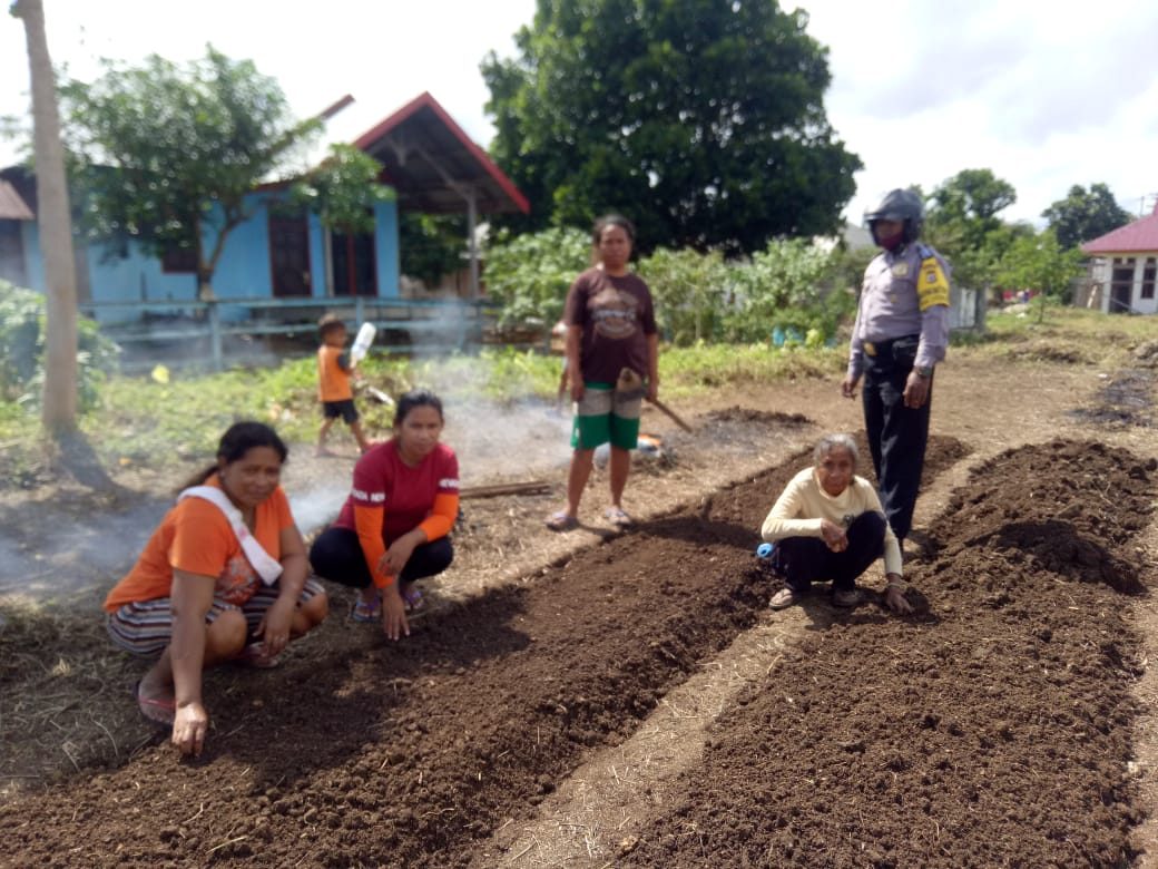 Bhabinkamtibmas juga memberikan masukan-masukan tentang cara menanam secara bertahap agar hasil panen tidak putus dalam rentangan yang panjang.