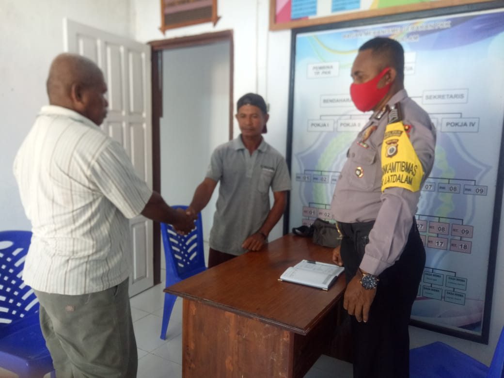 Tribratanews.polrestanimbar.com – Polda Maluku, Polres Maluku Tenggara Barat, Senin 13 Juli 2020, pukul 10.12 wit sampai dengan 11.20 wit, bertempat di Ruangan Bhabinkamtibmas Kantor Desa Latdalam, Kecamatan Tanimbar Selatan, Kabupaten Kepulauan Tanimbar Bhabinkamtibmas Desa Latdalam Bripka P. Peea, SE melaksanakan kegiatan Pemecahan Masalah/Problem Solving Pencurian.