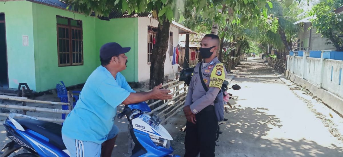 Tribratanews.polrestanimbar.com – Polda Maluku, Polres Maluku Tenggara Barat, Senin 20 Juli 2020, pukul 12.30 wit, bertempat di Desa Lauran, Kecamatan Tanimbar Selatan, Kabupaten Kepulauan Tanimbar Bhabinkamtibmas Desa Lauran Bripka Yusup A. Halirat, S.H menyambangi Bapak Bobi Nanlohi dan melaksanakan sosialisasi Adaptasi Kebiasaan Baru.