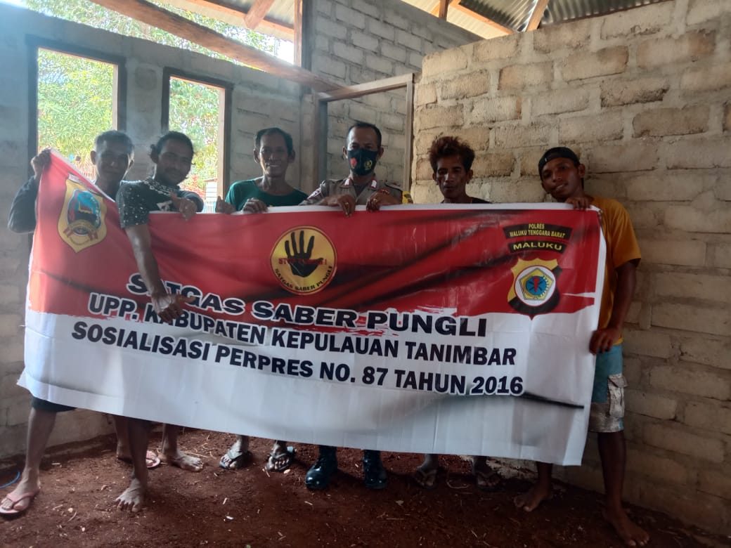 Tribratanews.polrestanimbar.com – Polda Maluku, Polres Maluku Tenggara Barat, Kamis 12 November 2020, pukul 12.00 wit bertempat di Desa Lelingluan Kecamatan Tanimbar Utara Kabupaten Kepulauan Tanimbar Bhabinkamtibmas Desa Lelingluan Bripka S. H. Kelmaskosu melaksanakan giat Sosialisasi Perpres Nomor 87 Tahun 2016 tentang Satgas Saber Pungli (Satuan Tugas Sapu Bersih Pungutan Liar) kepada masyarakat desa Lelingluan Kecamatan Tanimbar Utara Kabupaten Kepulauan Tanimbar.