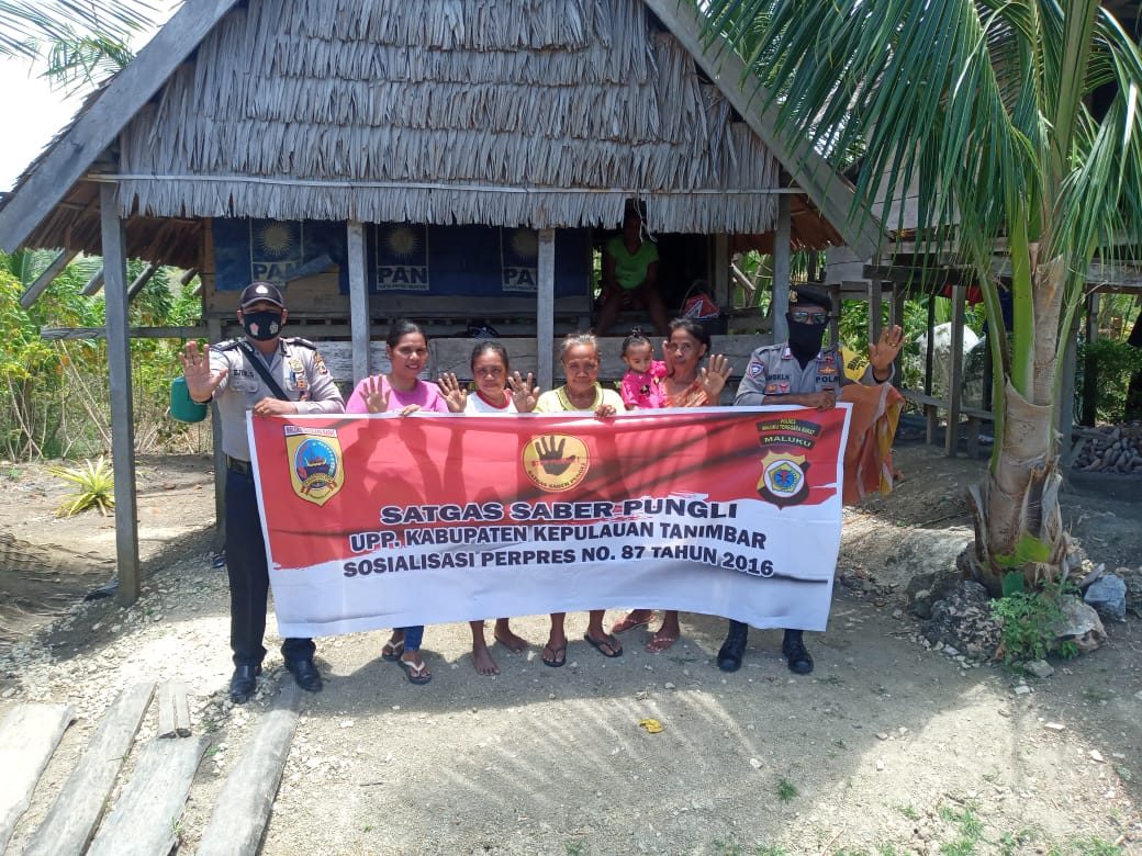 Tribratanews.polrestanimbar.com – Polda Maluku, Polres Maluku Tenggara Barat, Selasa 29 September 2020, pukul 10.00 wit. bertempat di Lahan Perkebunan Masyarakat Desa Lelingluan, Kecamatan Tanimbar Utara, Kabupaten Kepulauan Tanimbar P.S. Kanit Binmas Polsek Tanimbar Utara Bripka Freyjon R. Sianressy bersama Bhabinkamtibmas Desa Lelingluan Bripka S.H Kelmaskossu melaksanakan giat Sosialisasi Perpres Nomor 87 Tahun 2016 tentang Satgas Saber Pungli (Satuan Tugas Sapu Bersih Pungutan Liar) kepada masyarakat Desa Lelingluan Kecamatan Tanimbar Utara Kabupaten Kepulauan Tanimbar.