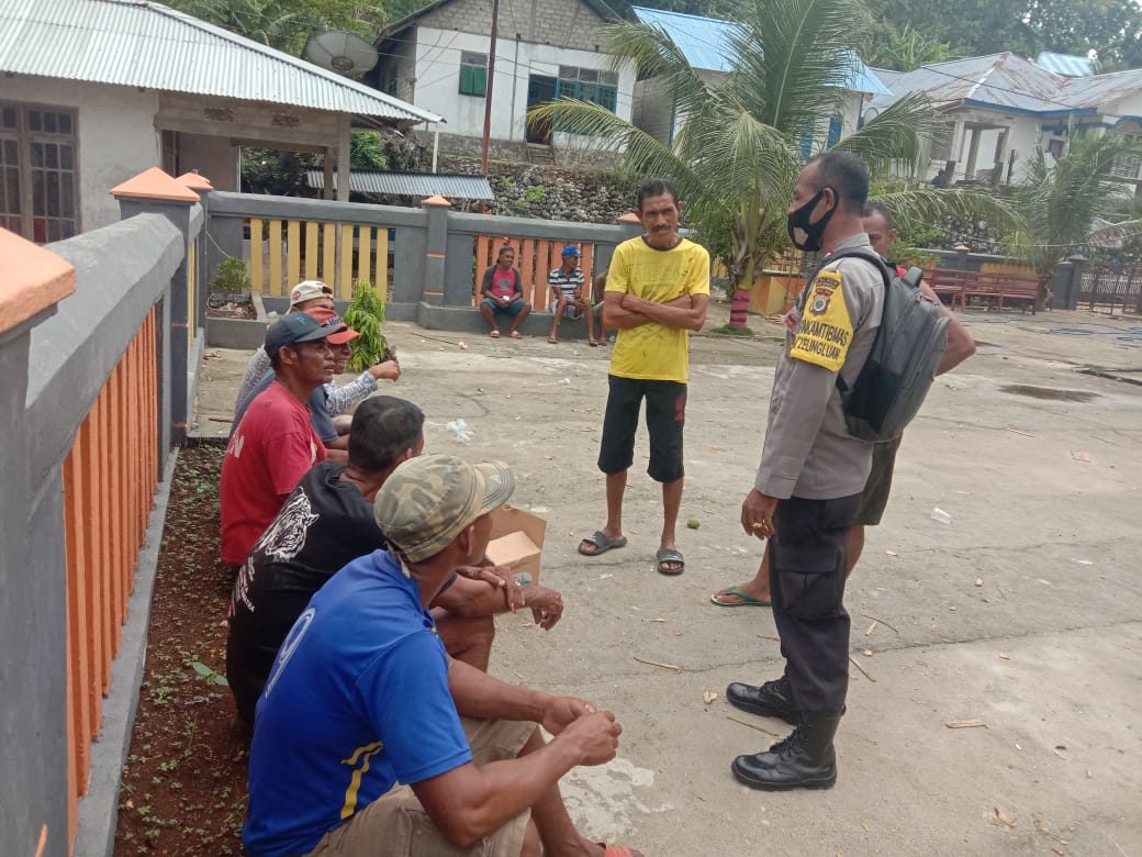 Tribratanews.polrestanimbar.com – Polda Maluku, Polres Maluku Tenggara Barat, Kamis 03 Desember 2020, pukul 13.00 wit bertempat di Desa Lelingluan Kecamatan Tanimbar Utara Kabupaten Kepulauan Tanimbar Bhabinkamtibmas Desa Lelingluan Bripka S.H. Kelmaskosu menyambangi beberapa warga masyarakat, sekaligus bhabin menyampaikan arahan tentang Edukasi, Sosialisasi dan Himbauan Pendisiplinan penerapan protokol kesehatan pencegahan Covid-19 Adaptasi Kebiasaan Baru.