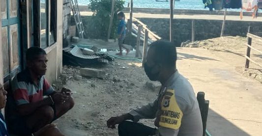 Tribratanews.polrestanimbar.com – Polda Maluku, Polres Maluku Tenggara Barat, Rabu 08 Juli 2020, pukul 08.00 Wit, bertempat di Desa Lelingluan Kecamatan Tanimbar Utara Kabupaten Kepulauan Tanimbar Bhabinkamtibmas Desa Lelingluan Bripka S. H. Kelmaskossu melaksanakan giat door to door system ( DDS ) dalam bentuk kunjungan terhadap warga Rt 003 / Rw 02 yang sedang mengobrol di dalam rumah bersama keluarganya.