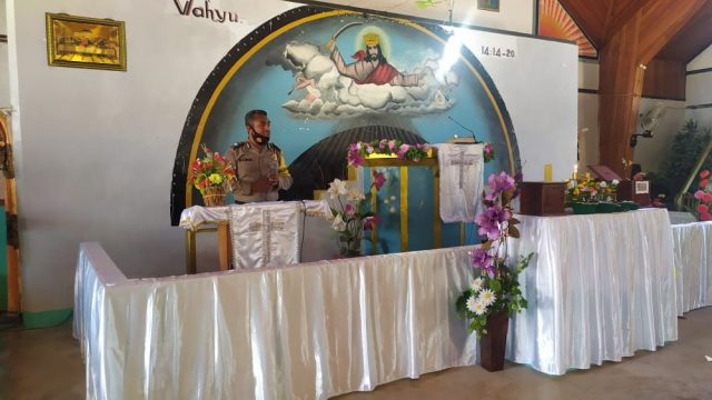 Tribratanews.polrestanimbar.com – Polda Maluku, Polres Maluku Tenggara Barat, Minggu 06 Desember 2020, pukul 11.10 wit, bertempat di Gereja Imanuel Jemaat GKPII Lermatang Kecamatan Tanimbar Selatan, Kabupaten Kepulauan Tanimbar Bhabinkamtibmas Desa Lermatang Briptu Tobias O. Daniel, S.H. melaksanakan Kegiatan Mimbar Kamtibmas.