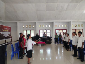 Tribratanews.polrestanimbar.com – Polda Maluku, Kepolisian Resor Kepulauan Tanimbar, Bhabinkamtibmas Desa Lermatang Polsek Tanimbar Selatan, Bripka MARIO UREN hadiri pelantikan Petugas KPPS (Kelompok Penyelenggara Pemungutan Suara), Kamis (07/11/24).