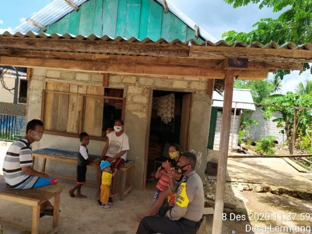 Tribratanews.polrestanimbar.com – Polda Maluku, Polres Maluku Tenggara Barat, Selasa 08 Desember 2020, pukul 11.38 wit bertempat di Desa Lermatang Kecamatan Tanimbar Selatan Kabupaten Kepulauan Tanimbar Bhabinkamtibmas Desa Lermatang Briptu T.O. Daniel, S.H mengunjungi masyarakat sekaligus melaksanakan giat Edukasi, Sosialisasi dan Himbauan Pendisiplinan penerapan protokol kesehatan pencegahan Covid-19 Adaptasi Kebiasaan Baru.
