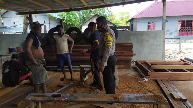 Tribratanews.polrestanimbar.com – Polda Maluku, Polres Maluku Tenggara Barat, Sabtu 21 November 2020, pukul 11.35 wit bertempat di Desa Lermatang Kecamatan Tanimbar Selatan Kabupaten Kepulauan Tanimbar Bhabinkamtibmas Desa Lermatang Briptu T. O. Daniel, S.H mengunjungi warga masyarakat yang sedang melakukan pekerjaan pembuatan kusen pintu dan jendela rumah sekaligus melaksanakan giat Edukasi, Sosialisasi dan Himbauan Pendisiplinan penerapan protokol kesehatan pencegahan Covid-19 Adaptasi Kebiasaan Baru.