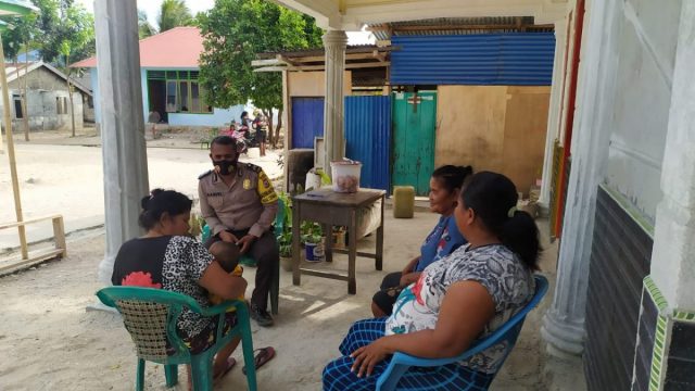 Tribratanews.polrestanimbar.com – Polda Maluku, Polres Maluku Tenggara Barat, Kamis 12 November 2020, pukul 10.35 wit bertempat di Desa Lermatang Kecamatan Tanimbar Selatan Kabupaten Kepulauan Tanimbar Bhabinkamtibmas Desa Lermatang Briptu T. O. Daniel, S.H mengunjungi warga masyarakat yang sedang duduk-duduk, sekaligus melaksanakan giat Edukasi, Sosialisasi dan Himbauan Pendisiplinan penerapan protokol kesehatan pencegahan Covid-19 Adaptasi Kebiasaan Baru.