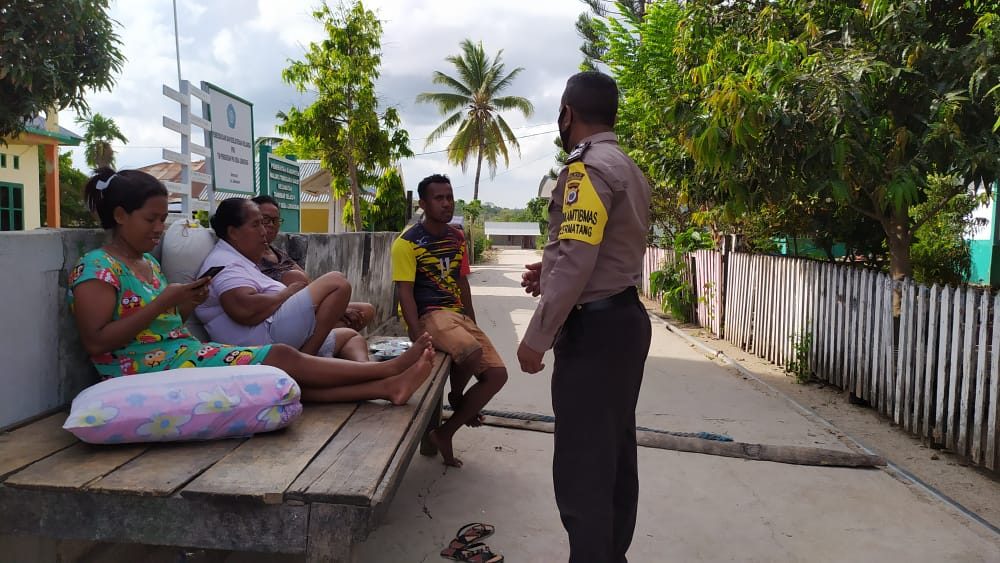 Tribratanews.polrestanimbar.com – Polda Maluku, Polres Maluku Tenggara Barat, Jumat 13 November 2020, pukul 16.10 wit, bertempat di Desa Lermatang Kecamatan Tanimbar Selatan, Kabupaten Kepulauan Tanimbar Bhabinkamtibmas Desa Lermatang Briptu Tobias O. Daniel, S.H. melaksanakan giat DDS dalam bentuk kunjungan kepada masyarakat sekaligus melaksanakan sosialisasi tentang hal-hal : kepatuhan dalam melaksanakan Protokol Kesehatan pencegahan penyebaran dan penularan Covid-19 dengan cara disiplin menerapkan 4M dalam aktifitas sehari-hari : menggunakan masker, mencuci tangan, menjaga jarak, menjauhi kerumunan, Pencegahan tindak pidana Persetubuhan terhadap anak dibawah umur sebagaimana diatur dalam Undang-Undang Nomor 23 Tahun 2002 tentang Perlindungan Anak yang saat ini marak dan sering terjadi dikalangan remaja baik putra maupun putri sebagai kelompok rentan baik sebagai korban maupun sebagai pelaku tindak pidana, dan penggunaan media sosial sebagai alat komunikasi elektronik yang sering disalahgunakan untuk melakukan tindak pidana sebagaimana diatur dalam Undang-Undang Nomor 11 Tahun 2008 tentang ITE.
