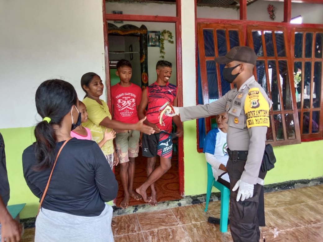 Tribratanews.polrestanimbar.com – Polda Maluku, Polres Maluku Tenggara Barat, Senin 13 Juli 2020, pukul 10.00 wit, bertempat di Desa Matakus Kecamatan Tanimbar Selatan Kabupaten Kepulauan Tanimbar Bhabinkamtibmas Desa Matakus Brigpol B. Christoffel melaksanakan Pembagian Masker gratis kepada masyarakat.