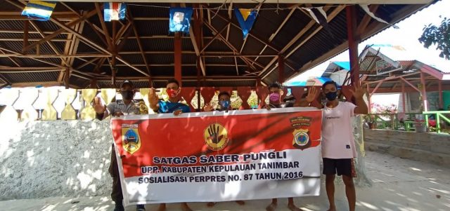 Tribratanews.polrestanimbar.com – Polda Maluku, Polres Maluku Tenggara Barat, Rabu 30 September 2020, pukul 09.00 wit kepada para Pemuda RT.002 Desa Matakus yang bertempat di Pantai Matakus Kecamatan Tanimbar Selatan Kabupaten Kepulauan Tanimbar Bhabinkamtibmas Desa Matakus Brigpol Brian Christoffel melaksanakan sosialisasi Perpres Nomor 87 tahun 2016 tentang Satgas Saber Pungli kepada warga masyarakat Desa Matakus antara lain :