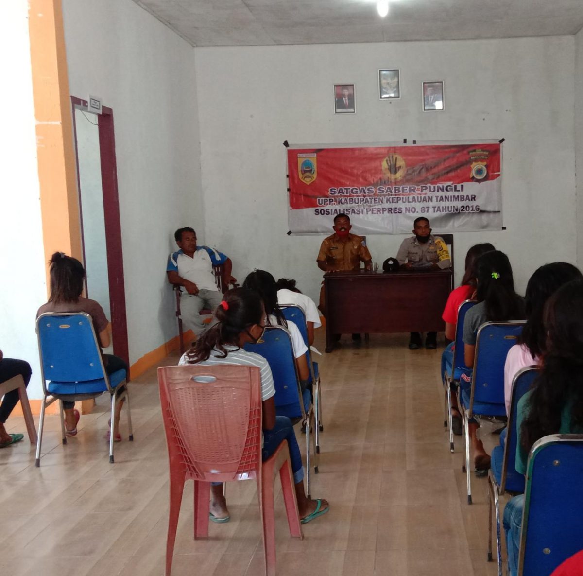 Tribratanews.polrestanimbar.com – Polda Maluku, Polres Maluku Tenggara Barat, Senin 14 September 2020, pukul 11.00 wit kepada Kaum Muda-Mudi Desa Matakus, yang bertempat di Kantor Desa Matakus Kecamatan Tanimbar Selatan Kabupaten Kepulauan Tanimbar Bhabinkamtibmas Desa Matakus Brigpol Brian Christoffel melaksanakan sosialisasi Perpres Nomor 87 tahun 2016 tentang Satgas Saber Pungli kepada Pemerintah Desa Matakus antara lain :