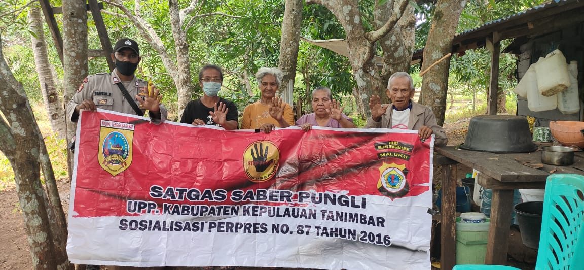Tribratanews.polrestanimbar.com – Polda Maluku, Polres Maluku Tenggara Barat, Rabu 12 Agustus 2020, pukul 13.55 wit. bertempat di Desa Olilit Barat, Kecamatan Tanimbar Selatan, Kabupaten Kepulauan Tanimbar Bhabinkamtibmas Desa Olilit Barat Bripka Edy F. Saklil melaksanakan Giat Sosialisasi Perpres Nomor 87 tahun 2016 tentang Satgas Saber Pungli (Satuan Tugas Sapu Bersih Pungutan Liar) kepada beberapa warga RT.20/RW.04 yang sementara duduk berkumpul dirumah keluarga Bapak Kaloru Belay.