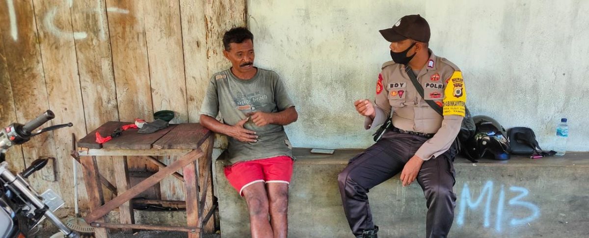 Tribratanews.polrestanimbar.com – Polda Maluku, Polres Maluku Tenggara Barat, Senin 20 Juli 2020, pukul 11.25 wit, bertempat di Desa Olilit Barat, Kecamatan Tanimbar Selatan Kabupaten Kepulauan Tanimbar Bhabinkamtibmas Desa Olilit Barat Bripka Edy F. Saklil melaksanakan kegiatan door to door Sistem (DDS) ke Bapak Aat Batmomolin yang sementara bekerja dibengkel tambal ban milikinya.