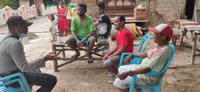 Tribratanews.polrestanimbar.com – Polda Maluku, Polres Maluku Tenggara Barat, Rabu 24 Juni 2020, pukul 12.00 wit, bertempat di Desa Olilit Barat Kecamatan Tanimbar Selatan Kabupaten Kepulauan Tanimbar Bhabinkamtibmas Desa Olilit Barat Brigpol E.F. Saklil menyambangi sekelompok warga Rt 20 / Rw 04 yang sementara duduk berkumpul sekaligus memberikan Bimbingan dan Penyuluhan (Binluh) tentang Prosedur Standar Tatanan Baru New Normal dalam menghadapi wabah Virus (Covid-19).
