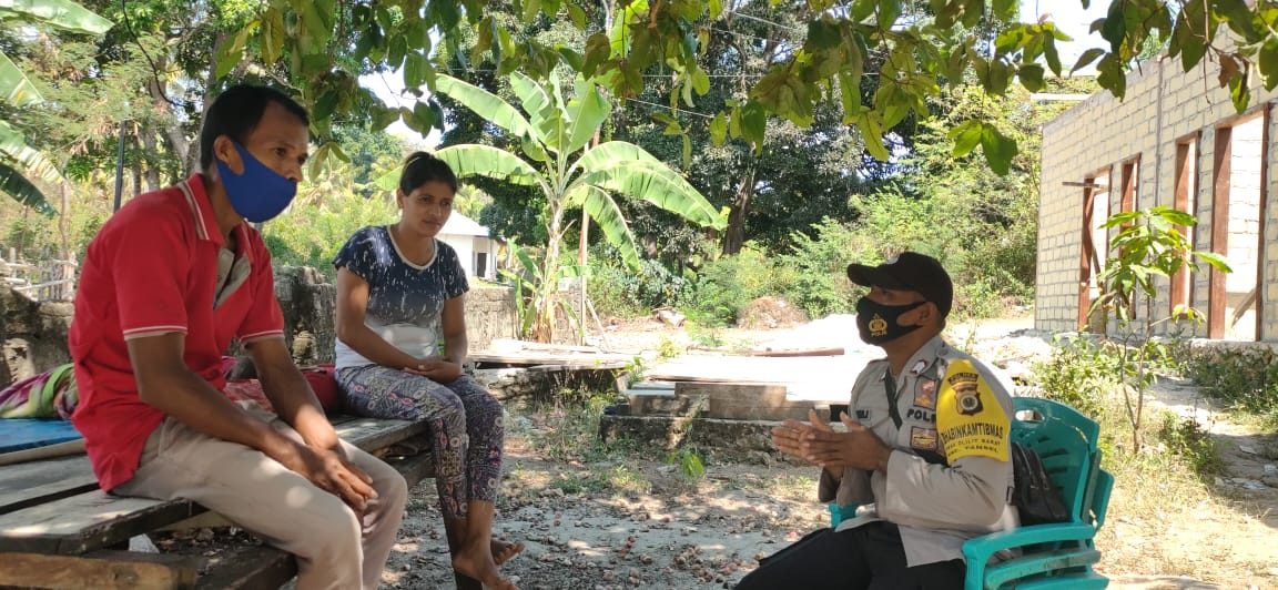 Bhabinkamtibmas melaksanakan giat Edukasi, Sosialisasi dan Himbauan Pendisiplinan penerapan protokol kesehatan pencegahan Covid-19 Adaptasi Kebiasaan Baru.