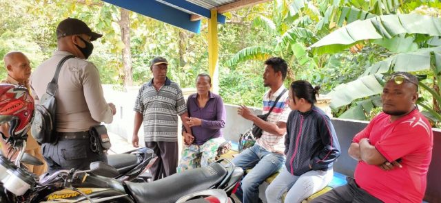 Tribratanews.polrestanimbar.com – Polda Maluku, Polres Maluku Tenggara Barat, Selasa 14 Juli 2020, pukul 11.45. Wit, bertempat di Desa Olilit Barat, Kecamatan Tanimbar Selatan Kabupaten Kepulauan Tanimbar Bhabinkamtibmas Desa Olilit Barat Bripka Edy F. Saklil menyambangi beberapa warga masyarakat yang sementara berkumpul ditempat parkir kendaraan Kantor Desa Olilit Raya.