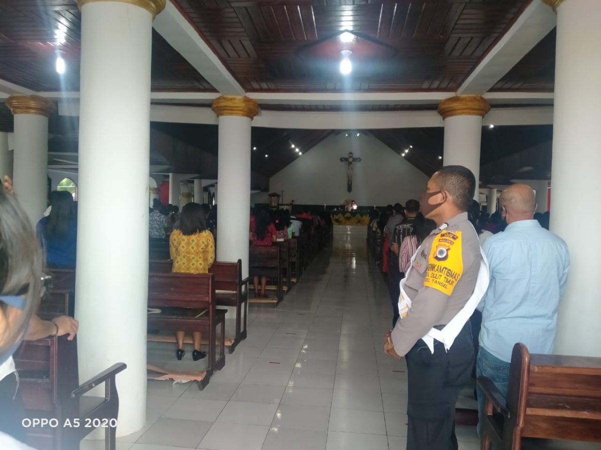 Tribratanews.polrestanimbar.com – Polda Maluku, Polres Maluku Tenggara Barat, Minggu 02 Agustus 2020, Jam 09.00 wit, bertempat di Gereja Paroki Ratu Rosario Suci Olilit Timur Kecamatan Tanimbar Selatan Kabupaten Kepulauan Tanimbar Bhabinkamtibmas Olilit Timur Bripka A. Dasfamudi melaksanakan kegiatan Misa Hari Minggu Biasa Ke-XVIII.