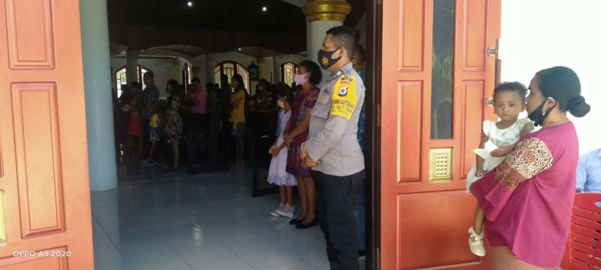 Tribratanews.polrestanimbar.com – Polda Maluku, Polres Maluku Tenggara Barat, Sabtu 31 Oktober 2020, pukul 09.00 wit, bertempat di Gereja Paroki Ratu Rosario Suci Olilit Timur Kecamatan Tanimbar Selatan Kabupaten Kepulauan Tanimbar Bhabinkamtibmas Desa Olilit Timur Bripka Antonius Dasfamudi mengamankan kegiatan Misa Hari Semua Orang Kudus, dengan warna liturgi putih.