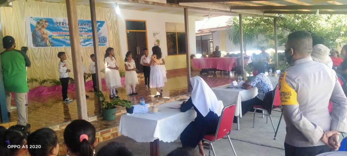 Bhabinkamtibmas Olilit Timur Amankan Lomba Paduan Suara Tingkat Anak, Pada HUT Gereja Katolik Ratu Rosario Suci Olilit Timur