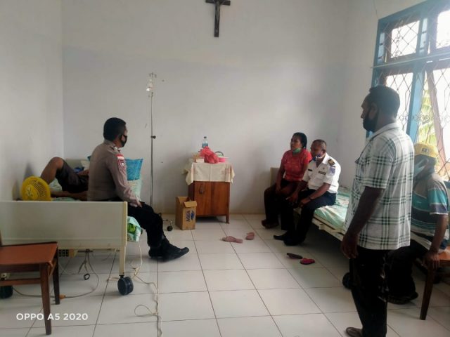 Tribratanews.polrestanimbar.com – Polda Maluku, Polres Maluku Tenggara Barat, Senin 28 September 2020, Jam 12.20 wit, bertempat di Rumah Sakit Fatimah Kecamatan Tanimbar Selatan, Kabupaten Kepulauan Tanimbar Bhabinkamtibmas Desa Olilit Timur Bripka Antonius Dasfamudi mengunjungi warga yang sedang sakit yang sementara dirawat di Rumah Sakit Fatima Saumlaki.