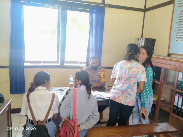 Tribratanews.polrestanimbar.com – Polda Maluku, Polres Maluku Tenggara Barat, Rabu 12 Agustus 2020, pukul 11.30 wit, bertempat di Ruang Pelayanan Binmas Polsek Tanimbar Selatan Polres Kepulauan Tanimbar Bhabinkamtibmas Desa Olilit Timur Bripka Antonius Dasfamudi melaksanakan kegiatan pemecahan masalah (Problem Solving) Tauran Para Pelajar SMK Negeri 6 Saumlaki.