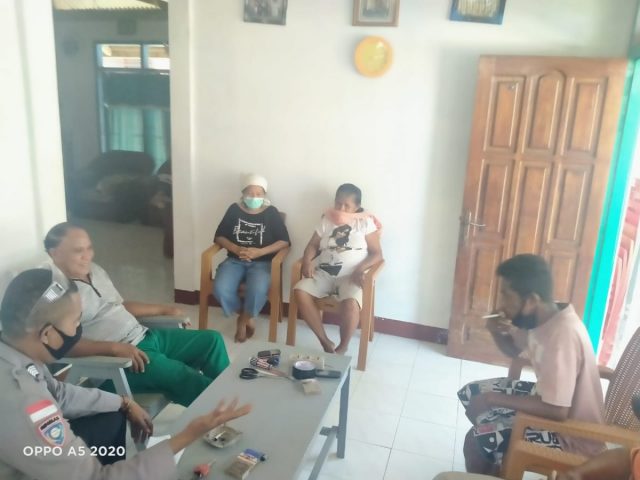 Tribratanews.polrestanimbar.com – Polda Maluku, Polres Maluku Tenggara Barat, Jumat 07 Agustus 2020, pukul 08.00 wit, bertempat di RT.004 / RW.01 Desa Olilit Timur Kecamatan Tanimbar Selatan Kabupaten Kepulauan Tanimbar Bhabinkamtibmas Desa Olilit Timur Bripka Antonius Dasfamudi sambangi Keluarga Samangun yang sementara duduk di Rumah.
