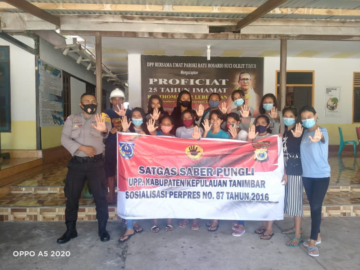 Tribratanews.polrestanimbar.com – Polda Maluku, Polres Maluku Tenggara Barat, Senin 21 September 2020, pukul 13.30 wit bertempat di Desa Olilit Timur Kecamatan Tanimbar Selatan, Kabupaten Kepulauan Tanimbar Bhabinkamtibmas Desa Olilit Timur Bripka Antonius Dasfamudi melaksanakan giat sosialisasi Perpres Nomor 87 Tahun 2016 tentang Satgas Saber Pungli (Satuan Tugas Sapu Bersih Pungutan Liar) Warga Desa Olilit Timur Kecamatan Tanimbar Selatan Kabupaten Kepulauan Tanimbar.