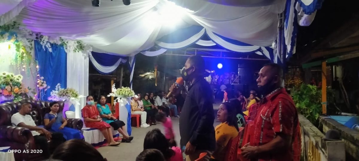 Tribratanews.polrestanimbar.com – Polda Maluku, Polres Maluku Tenggara Barat, Selasa 29 Desember 2020, pukul 23.00 wit, bertempat di Desa Olilit Timur Kecamatan Tanimbar Selatan, Kabupaten Kepulauan Tanimbar, Bhabinkamtibmas Desa Olilit Timur Bripka Antonius Dasfamudi melaksanakan Pembubaran salah Satu Acara Resepsi Pernikahan yang dilaksanakan di Desa Olilit Timur yang tidak sesuai Protokol Kesehatan.