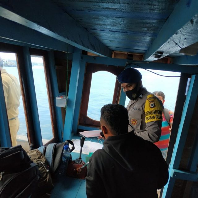 Tribratanews.polrestanimbar.com – Polda Maluku, Polres Maluku Tenggara Barat, Jumat 04 Desember 2020, pukul 09.30 wit bertempat di Pelabuhan Adaut Kecamatan Selaru Kabupaten Kepulauan Tanimbar Bhabinkamtibmas Perairan Selaru Briptu I. Hayale melaksanakan giat menyambangi KM. Daussa yang akan melakukan pelayaran. Dalam kesempatan tersebut, bhabinkamtibmas mensosialisasikan tentang adaptasi kehidupan yang baru (AKB) tentang aktivitas normal seperti biasa dengan menerapkan protokol kesehatan : selalu memperhatikan kebersihan kapal dan selalu menggunakan masker saat beraktivitas sesuai dengan protokol kesehatan pencegahan Covid-19, tidak mengangkut melebihi kapasitas (over draft), selalu memperhatikan cuaca ketika hendak melaut.