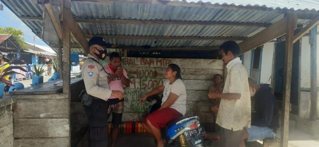 Tribratanews.polrestanimbar.com – Polda Maluku, Polres Maluku Tenggara Barat, Kamis 17 September 2020, pukul 14.00 wit, bertempat di Desa Ritabel Kecamatan Tanimbar Utara, Kabupaten Kepulauan Tanimbar, Bhabinkamtibmas Ritabel Bripka S. Rahataly melaksanakan giat Perimbangan Operasi Yustisi pendisiplinan Protokol kesehatan pencegahan dan penularan Covid-19.