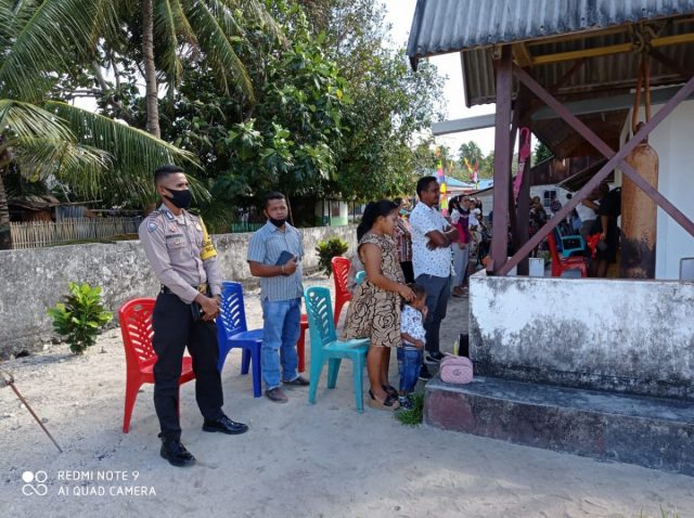 Tribratanews.polrestanimbar.com – Polda Maluku, Polres Maluku Tenggara Barat, Minggu 16 Agustus 2020, pukul 09.00 wit bertempat di Gedung Gereja Malinan Soru Desa Romean, Kecamatan Fordata, Kabupaten Kepulauan Tanimbar Bhabinkamtibmas Desa Romean Briptu Edison S. Metaloby mengamankan pelaksanaan Ibadah Minggu.
