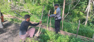 Kehadiran Bhabinkamtibmas lewat giat sambang yang dilakukan tersebut tak hanya sekedar untuk mendengar aspirasi dari Masyarakat maupun memberikan pendampingan, namun juga turut serta terjun langsung dalam membantu membersihkan kebun jagung miliknya sekaligus membuat pagar agar tanaman tidak dirusaki oleh hewan liar.