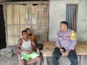 Dalam kunjungannya, Bhabinkamtibmas Sangliat Dol Menyambangi Bpk Yanto Koisin yang Sempat dikabarkan hilang pada saat melaut untuk mencari ikan yang diakibatkan Cuaca yang Ekstrim.