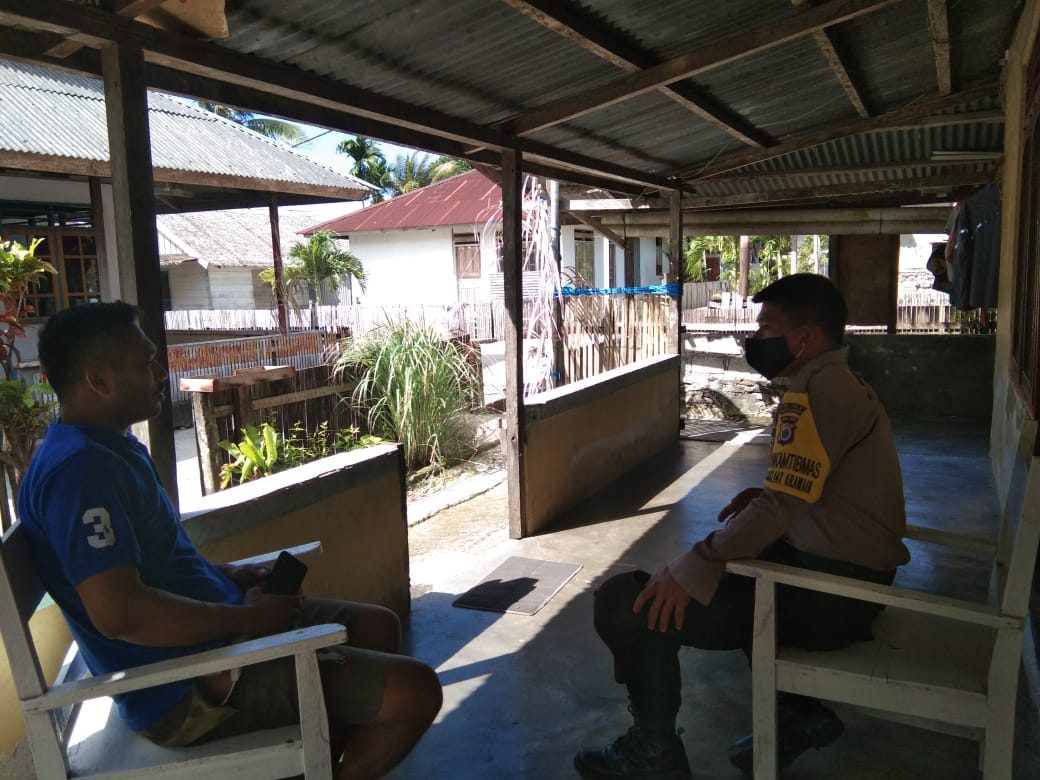 Tribratanews.polrestanimbar.com – Polda Maluku, Polres Maluku Tenggara Barat, Minggu 07 Juni 2020, pukul 11.00 wit, bertempat di Desa Sangliat Krawain, Kecamatan Wertamrian Kabupaten Kepulauan Tanimbar Bhabinkamtibmas desa Sangliat Krawain Briptu M. Muriany menyambangi masyarakat yang sedang duduk di depan rumah dan sosialisasikan Tatanan Kehidupan Baru ( New Normal ) dan Protokol Kesehatan Pencegahan Covid-19.