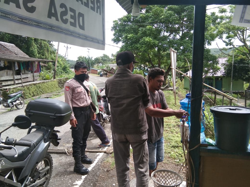 Masyarakat Desa Sangliat Krawain yang baru pulang dari kota,dianjurkan oleh tim Relawan Covid 19 pada Posko untuk mencuci tangan, hal ini dilakukan guna mencegah penularan virus covid 19.