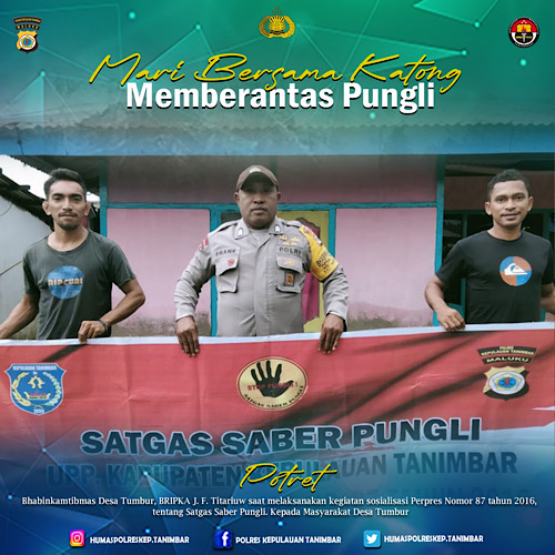 Tribratanews.polrestanimbar.com – Polda Maluku, Polres Kepulauan Tanimbar, Bhabinkamtibmas Desa Tumbur Bripka J. F. Titariuw cegah Pungli dengan cara Mensosialisasikan Perpres Nomor 87 tahun 2016, tentang Satgas Saber Pungli Kepada Warga Desa Tumbur, Kecamatan Wertamrian, Kabupaten Kepulauan Tanimbar, Rabu (10/05).