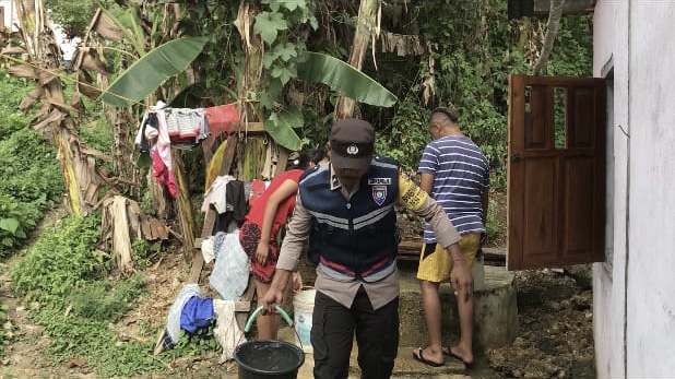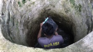 Melihat warga binaannya yang sedang membutuhkan bantuan, Bripda Johanis J. Lololuan dengan sigap membantu warga binaan yang sedang membersihkan sumur air yang akan digunakan untuk kebutuhan Air Bersih milik salah satu Warga Binaan RT 002/ RW 01 Desa Tutunametal.
