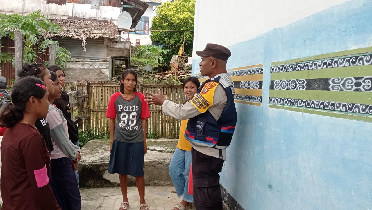 Tribratanews.polrestanimbar.com – Polda Maluku, Polres Kepulauan Tanimbar, Wujudkan Polri peduli Anak, Bhabinkamtibmas desa Watmuri II Aipda S. Rahantaly Sambangi beberapa Pelajar SMP di Desa Watmuri, Kecamatan Nirunmas, Kabupaten Kepulauan Tanimbar, Kamis (11/05).