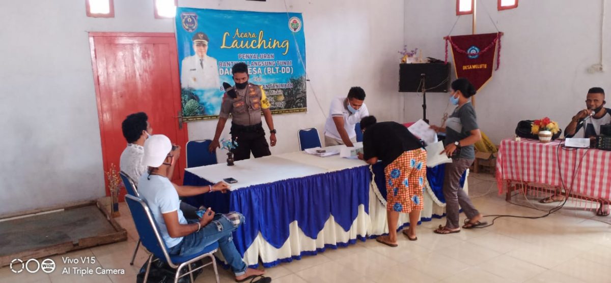 Tribratanews.polrestanimbar.com – Polda Maluku, Polres Maluku Tenggara Barat, Jumat 19 Juni 2020, pukul 11. 00 wit bertempat di Desa Welutu, Kecamatan Wermaktian Kabupaten Kepulauan Tanimbar Bhabinkamtibmas Desa Welutu Briptu A. Ngilawane melaksanakan giat Pengamanan Penyaluran Bantuan langsung Tunai Danah Desa tahap Pertama ( BLT – DD Desa Welutu Tahap I Tahun 2020 ).