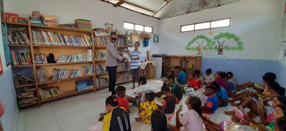 Tribratanews.polrestanimbar.com – Polda Maluku, Polres Maluku Tenggara Barat, Senin 07 Desember 2020, pukul 13.30 wit, bertempat di Desa Werain, Kecamatan Selaru, Kabupaten Kepulauan Tanimbar, Bhabinkamtibmas Desa Werain Bripda Wanto Isran melaksanakan giat proses belajar mengajar bersama dengan anak-anak Desa Werain di Taman Baca Inovator.