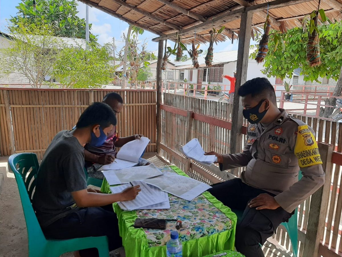 Tribratanews.polrestanimbar.com – Polda Maluku, Polres Maluku Tenggara Barat, Minggu 18 Oktober 2020, pukul 16.00 wit, bertempat di Desa Werain Kecamatan Selaru, Kabupaten Kepulauan Tanimbar Bhabinkamtibmas Desa Werain Bripda Wanto Isran bersama dengan pegawai stastistik melaksanakan giat pendataan sensus penduduk.