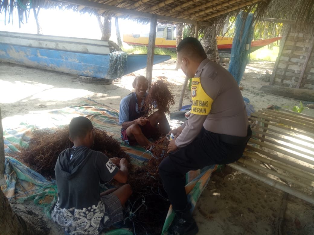 Tribratanews.polrestanimbar.com – Polda Maluku, Polres Maluku Tenggara Barat, Sabtu 06 Juni 2020, pukul 14.30 wit, bertempat di Desa Werain , Kecamatan Selaru, Kabupaten Kepulauan Tanimbar Bhabinkamtibmas Desa Werain BRIPDA WANTO ISRAN menyambangi masyarakat desa Werain yang sementara memanen rumput laut serta menyampaikan New Normal dan Protokol Pencegahan penularan Covid-19.