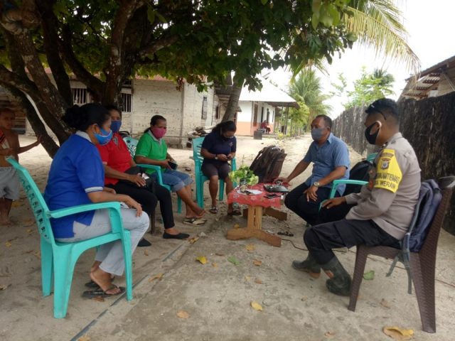 Tribratanews.polrestanimbar.com – Polda Maluku, Polres Maluku Tenggara Barat, Selasa, 15 Desember 2020, pukul 12.00 wit bertempat di Desa Werain, Kecamatan Selaru, Kabupaten Kepulauan Tanimbar Bhabinkamtibmas Desa Werain Bripda Wanto Isran melaksanakan giat sambang pada warga desa binaan. Dalam giat sambang tersebut, bhabinkamtibmas memberikan arahan, himbauan tentang pendisiplinan protokol kesehatan pencegahan Covid-19 pada warga desa binaan.
