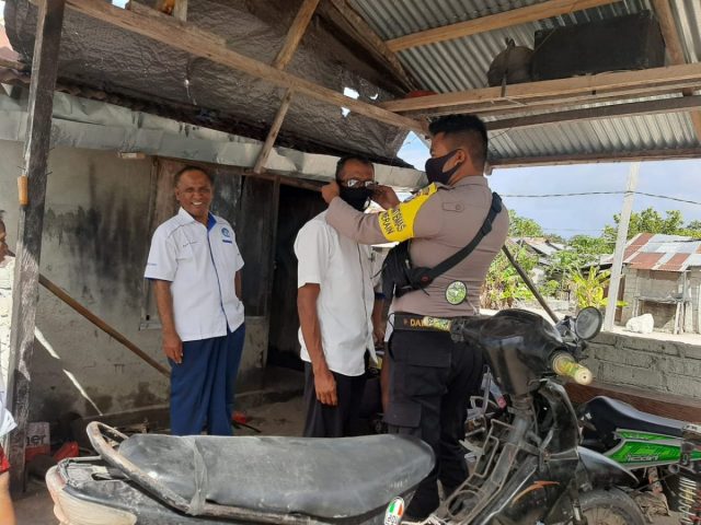 Tribratanews.polrestanimbar.com – Polda Maluku, Polres Maluku Tenggara Barat, Rabu 16 September 2020, pukul 09.00 wit, bertempat di Desa Werain, Kecamatan Selaru, Kabupaten Kepulauan Tanimbar Bhabinkamtibmas Desa Werain Bripda Wanto Isran melaksanakan kegiatan Perimbangan operasi Yustisi penegakan hukum protokol kesehatan, dengan cara :