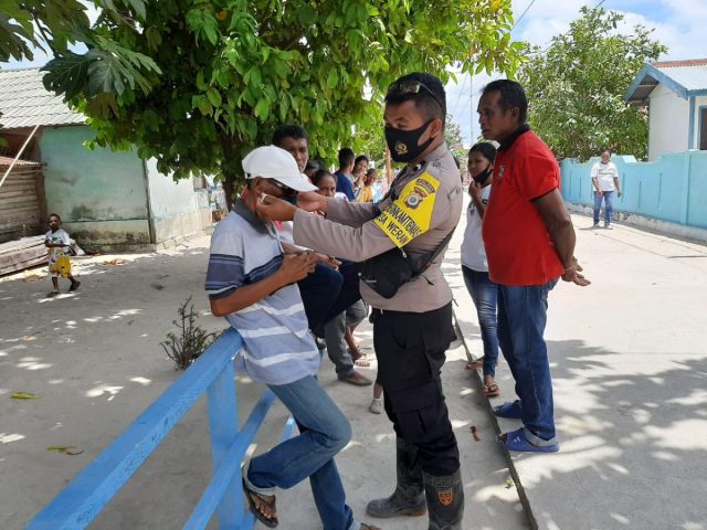 Tribratanews.polrestanimbar.com – Polda Maluku, Polres Maluku Tenggara Barat, Selasa 29 September 2020, pukul 12.30 wit bertempat di Desa Werain Kecamatan Selaru Kabupaten Kepulauan Tanimbar Bhabinkamtibmas Desa Werain Bripda Wanto Isran menyambangi sekelompok masyarakat Desa Werain yang sementara berkumpul, sekaligus Bhabinkamtibmas melaksanakan giat Edukasi, Sosialisasi dan Himbauan Pendisiplinan penerapan protokol kesehatan pencegahan Covid-19 dan Adaptasi Kebiasaan Baru.