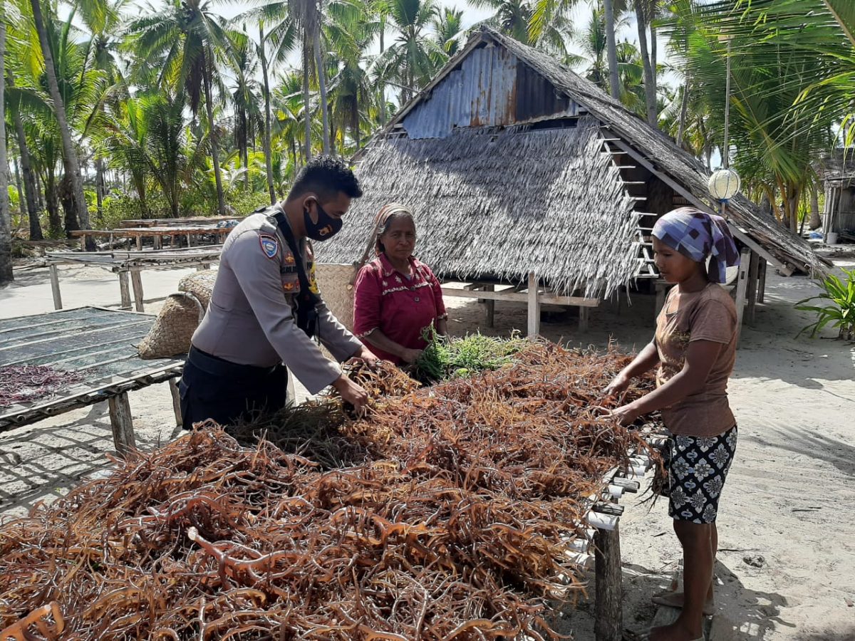 Tribratanews.polrestanimbar.com – Polda Maluku, Polres Maluku Tenggara Barat, Senin 21 September 2020, pukul 11.00 wit, bertempat di Desa Werain Kecamatan Selaru Kabupaten Kepulauan Tanimbar Bhabinkamtibmas Desa Werain Bripda Wanto Isran menyambangi masyarakat Desa Werain yang sementara memanen rumput laut.