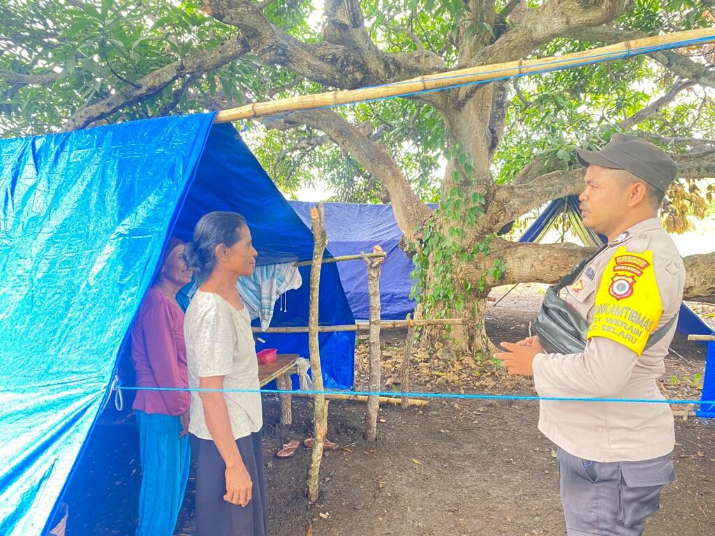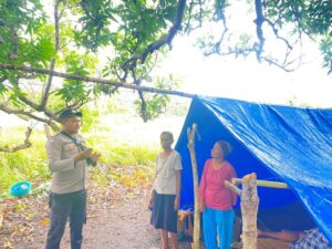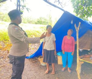Tribratanews.polrestanimbar.com – Polda Maluku, Polres Kepulauan Tanimbar, Bhabinkamtibmas Desa Werain Briptu Wanto Isran Menyambangi Warga Masyarakat yang mengungsi pada dataran tinggi di Desa Werain, Kec. Selaru, Kab. Kepulauan Tanimbar, Sabtu (21/1/23).